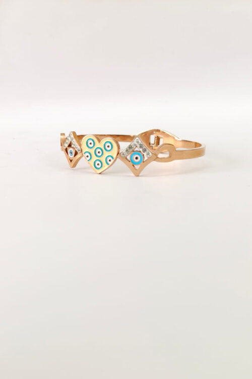 Elegant Evil Eye Heart Charm Bangle – Golden Protection Jewelry