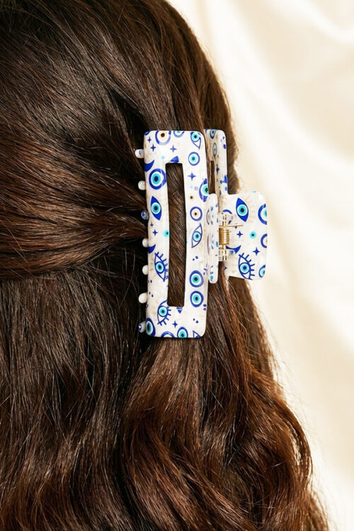 Celestial Evil Eye & Moon Pattern Rectangular Acetate Hair Claw
