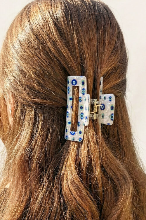Chic Pearlescent Acetate Hair Claw with Artistic Lash Evil Eye Pattern