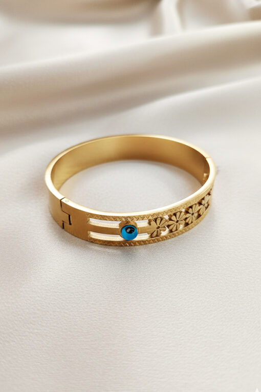 Golden Evil Eye Wave Bangle – Elegant Protection & Modern Charm