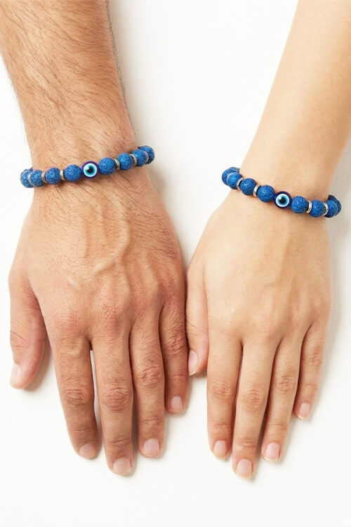 Unisex Blue Lava Stone Beaded Bracelet with Evil Eye Protection