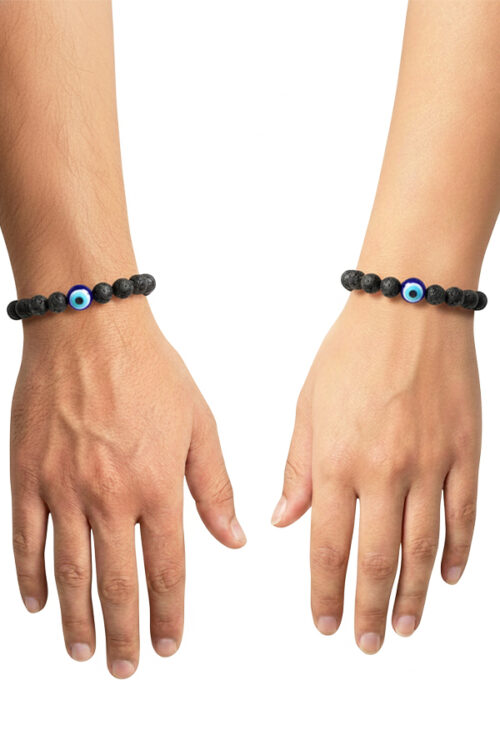 Unisex Black Lava Stone Bracelet with Blue Evil Eye Talisman