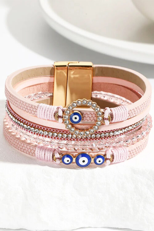 Pink Rope Adjustable Bracelet with Multi-Color Evil Eye Cross