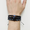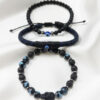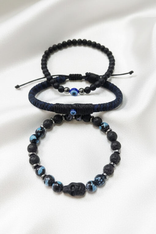 3-Piece Men’s Blue & Black Beaded Bracelet Stack with Evil Eye & Skull
