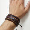 Men’s Multi-Strand Blue Leather Bracelet with Gold Evil Eye Bar