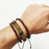 3-Piece Men’s Bracelet Set with Wood Beads, Braided Leather & Evil Eye