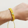 Men’s Vibrant Yellow Braided Leather Bracelet with Evil Eye Bead