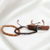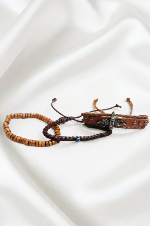 Men’s 3-Piece Stackable Bracelet Set with Evil Eye & Wood Beads