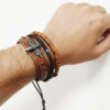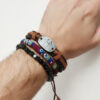 Channel a spirit of adventure and rugged style with this curated 3-Piece Men’s Bracelet Set. Designed for the free-spirited man, this stack combines earthy textures with meaningful symbols to create a versatile accessory collection that speaks to a love for the journey. The set features three distinct wristbands, each offering a unique aesthetic: Natural Wood Beads: A strand of smooth, brown wooden disc beads adds a grounded, organic, and bohemian touch to the stack. Protective Evil Eye: A minimalist dark braided cord bracelet holds a solitary Blue Evil Eye bead, serving as a discreet traditional talisman to ward off negative energy and “Nazar”. Vintage Moto Charm: The centerpiece is a multi-strand brown leather and cord bracelet anchored by an antique silver-toned Motorcycle Charm, symbolizing freedom and the open road. Equipped with adjustable sliding knots, these bracelets ensure a comfortable, custom fit for any wrist size. This set is the perfect gift for travelers, bikers, or anyone with an adventurous soul.