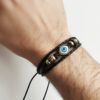 Men’s Multi-Strand Black Leather Bracelet with Antique Evil Eye & Braided Detail