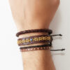 3-Piece Men’s Bracelet Stack with Woven Fabric Inlay & Evil Eye