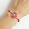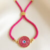 Pink Rope Adjustable Bracelet with White Enamel & Pink Evil Eye Charm