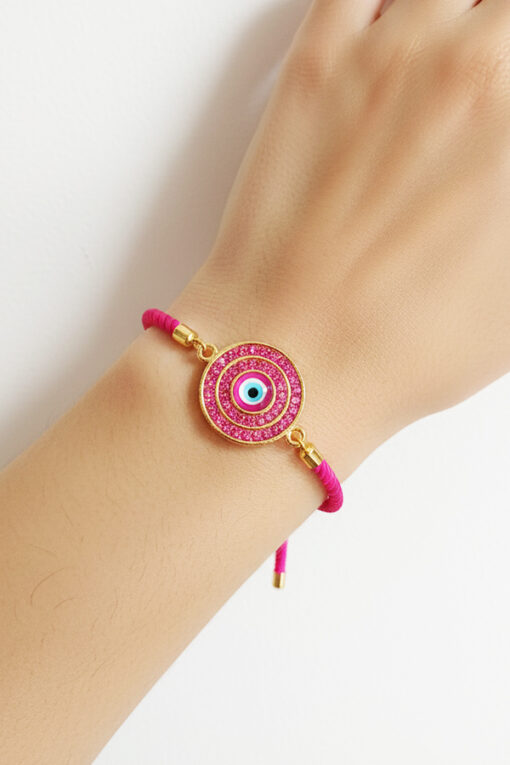 Adjustable Hot Pink Cord Bracelet with Glittering Evil Eye Charm