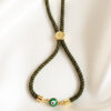 Adjustable Olive Green Cord Bracelet with Enamel Evil Eye Charm