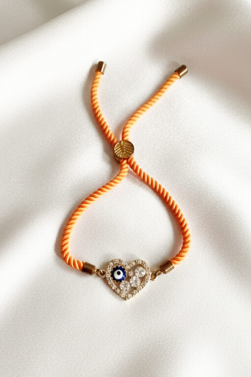Adjustable Orange Cord Bracelet with Crystal Heart