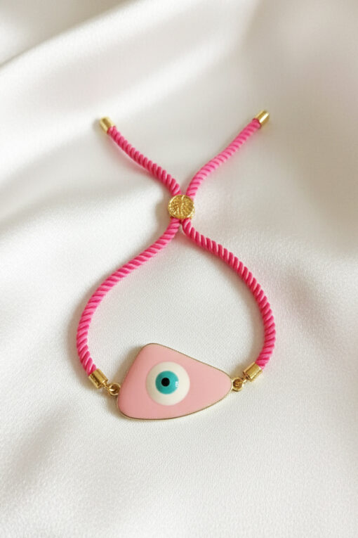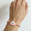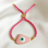 Adjustable Pink Cord Bracelet with Pastel Enamel Evil Eye Charm