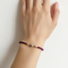 Adjustable Purple Cord Bracelet with Enamel Elephant & Evil Eye