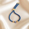 Blue Rope Adjustable Bracelet with White Enamel Evil Eye Charm
