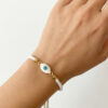 The centerpiece of the bracelet is a sophisticated oval-shaped Evil Eye charm.