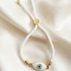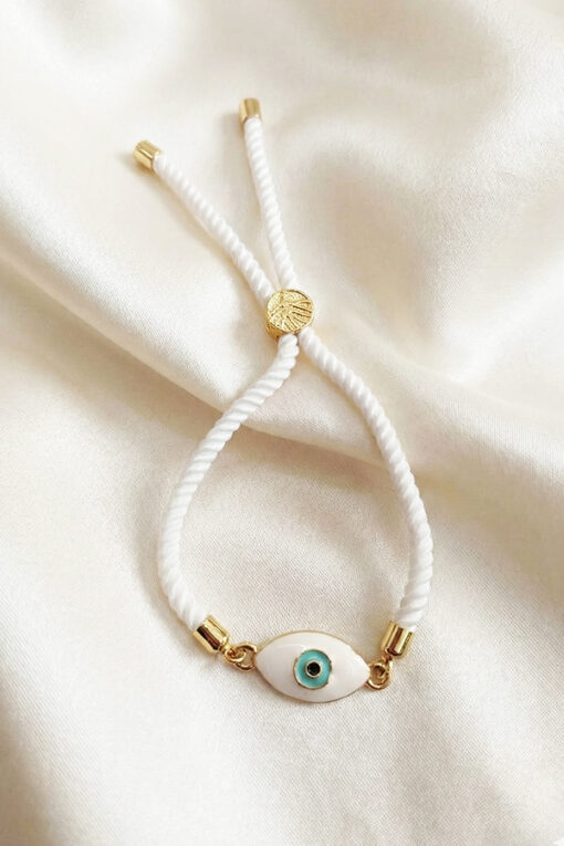 Adjustable White Rope Bracelet with Gold-Toned Enamel Evil Eye Charm