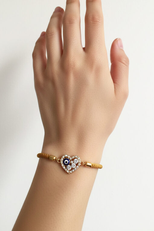 The centerpiece of this bracelet is a stunning gold-toned heart charm, perfectly blending romance with spiritual defense.