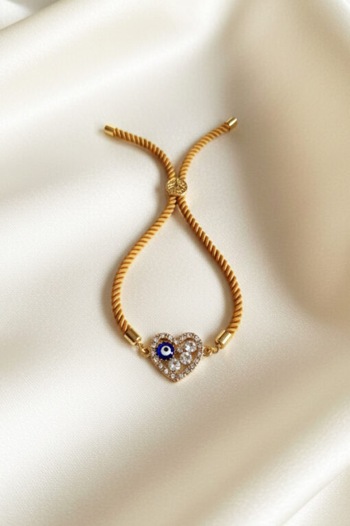 Adjustable Yellow Cord Bracelet with Crystal Heart & Evil Eye
