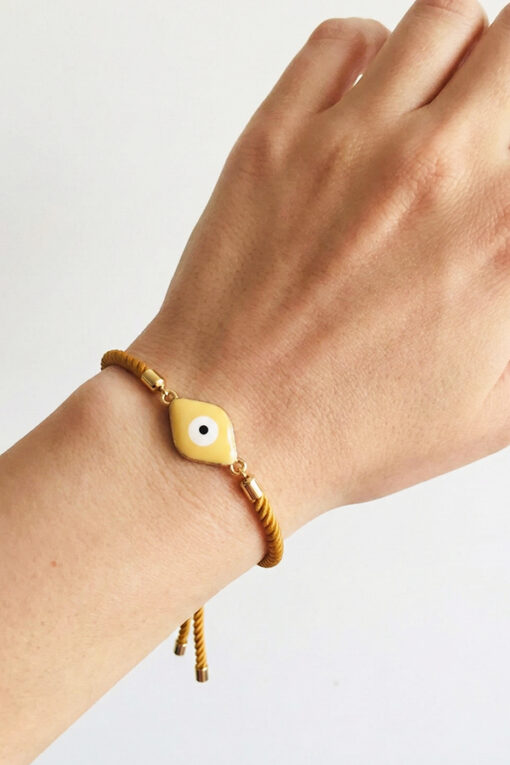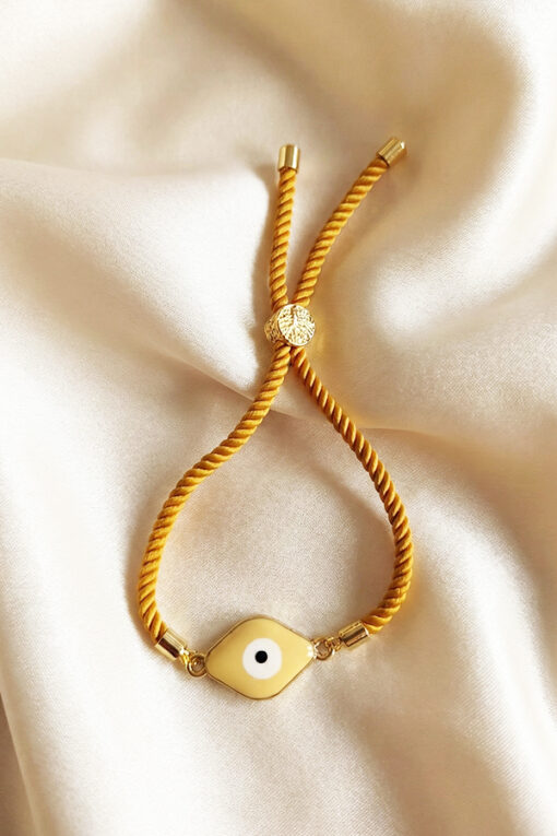 Infuse your daily style with positivity and a touch of glamour with this vibrant Yellow Cord Evil Eye Bracelet.