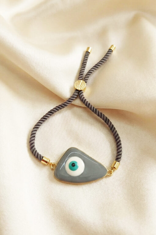Adjustable Yellow Cord Bracelet with Pavé Crystal Evil Eye Charm