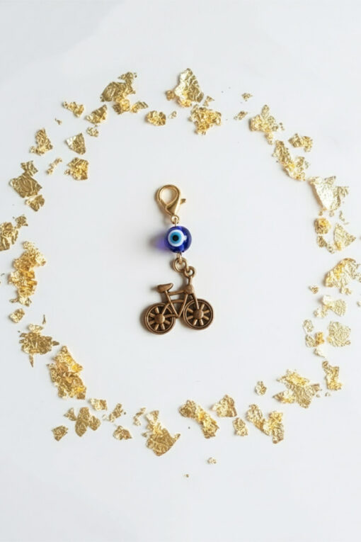 Antique Gold Bicycle & Evil Eye Charm Clip