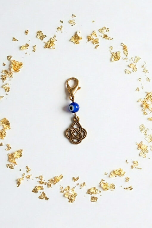 Antique Gold Endless Knot Charm Clip with Blue Evil Eye