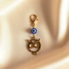 Antique Gold Owl Charm Clip with Evil Eye Protection Bead