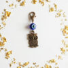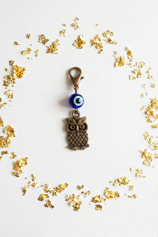 Antique Silver Textured Owl Charm Clip with Evil Eye Bead