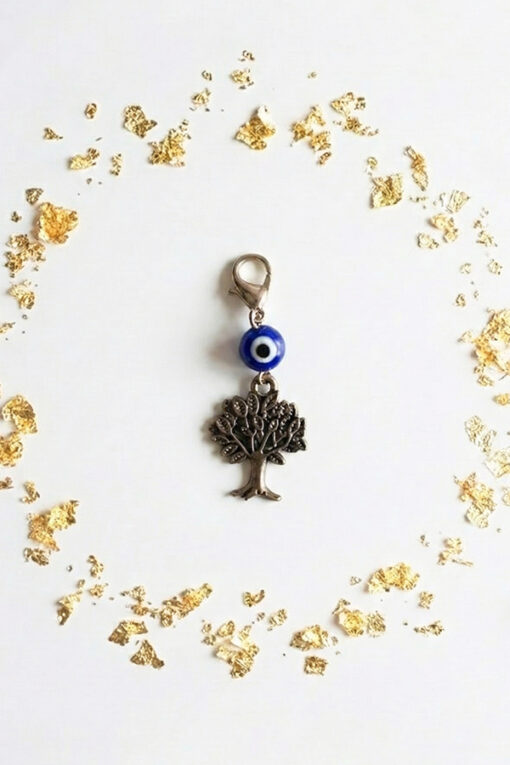 Antique Silver Tree of Life Charm Clip with Blue Evil Eye