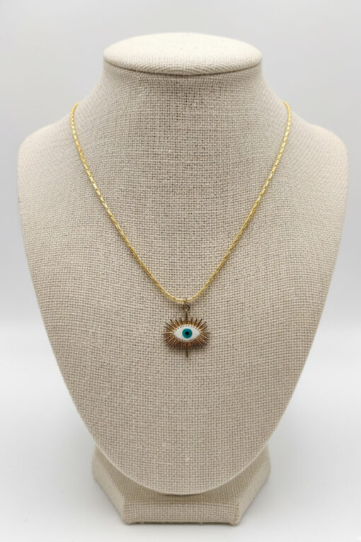 Artistic Gold Sunburst Evil Eye Pendant Necklace