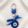 Traditional Turkish Blue Glass Evil Eye Wall Hanging with Beaded Chain
