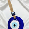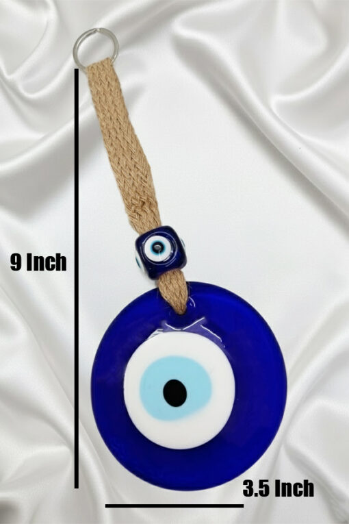 Bring powerful good fortune and timeless protection into your home or car with this traditional Evil Eye (Nazar) hanging. The centerpiece is a substantial, polished deep blue glass Evil Eye medallion, featuring the iconic concentric circles. The medallion is suspended by a sturdy, woven jute strap, which is secured to a metal keyring and accented with a cube-shaped Evil Eye bead for added detail. This combination of authentic glass and rustic fiber gives it a charming, earthy appeal. This meaningful piece serves as both a beautiful decorative accent and a potent amulet. It is perfect for hanging in an entranceway, near a window, or in a car, making it an ideal gift for housewarmings or anyone seeking to infuse their space with safety and positive energy.