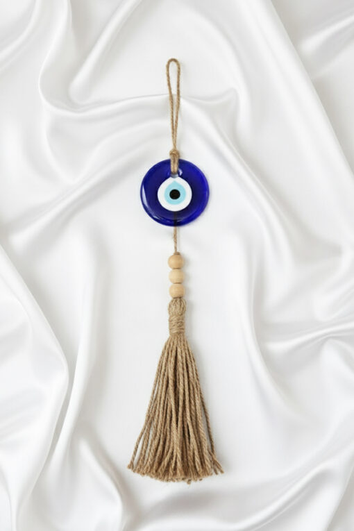 Authentic Turkish Glass Evil Eye Wall Hanging with Jute Tassel