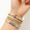 Beige Stacked Bracelet with Crystal Evil Eye Charms