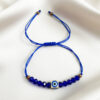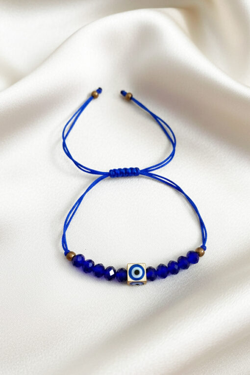 Blue Beaded Evil Eye Cord Bracelet – Adjustable Square Charm Protection Jewelry