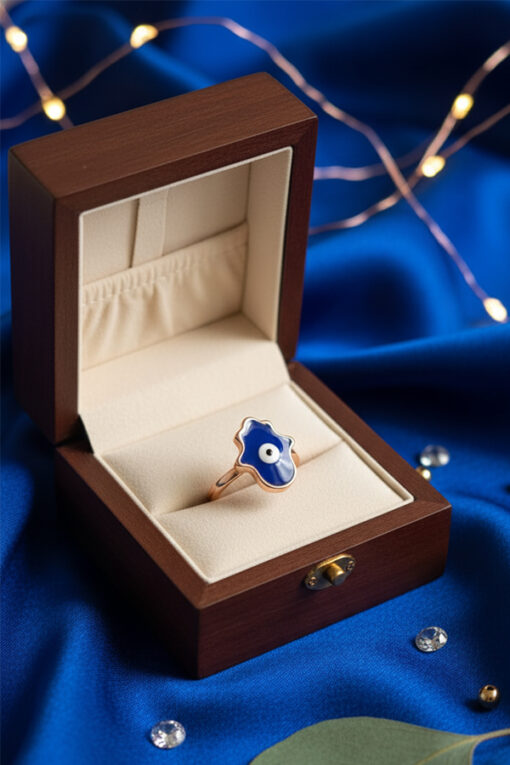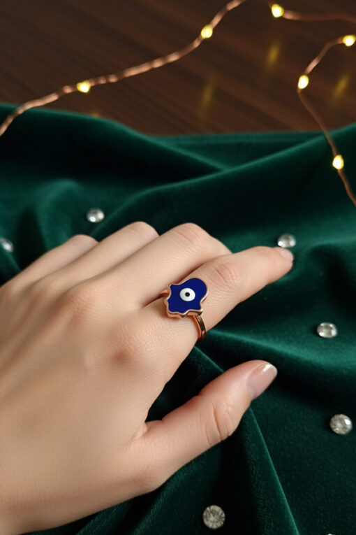 Blue Hamsa Evil Eye Ring – Golden Protection & Elegance