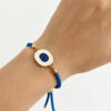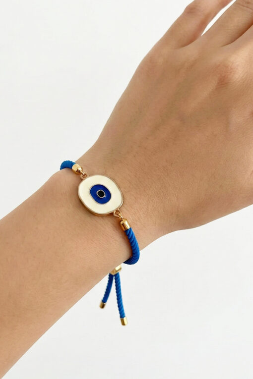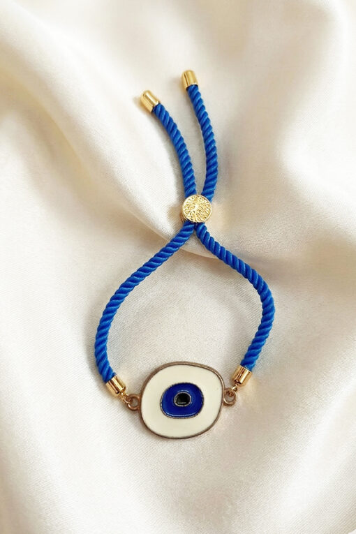 Blue Rope Adjustable Bracelet with White Enamel Evil Eye Charm