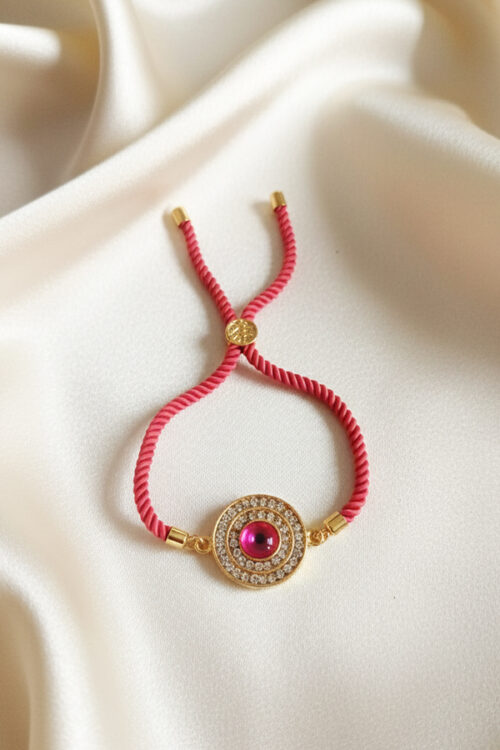Pink Rope Adjustable Bracelet with Multi-Color Evil Eye Cross Charm