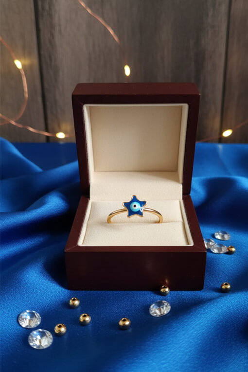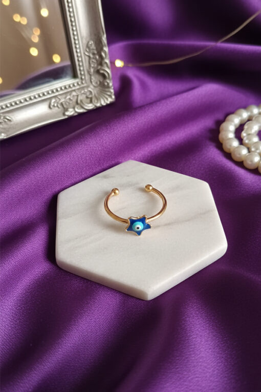Blue Star Evil Eye Ring – Golden Charm of Luck and Protection