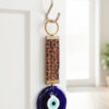 Bohemian Deep Blue Glass Evil Eye Hanging with Leopard Print Accent