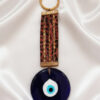 Traditional Turkish Blue Glass Evil Eye Wall Hanging with Beaded Chain