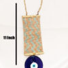 Bring powerful protection and distinctive bohemian style into your space with this unique Evil Eye (Nazar) hanging. The centerpiece is a substantial, polished deep blue glass Evil Eye medallion, the globally recognized talisman revered for its power to ward off negative energy and attract good fortune. The medallion is suspended beneath a rectangular piece of natural jute fabric, which features a striking teal chevron pattern. The jute is neatly framed with gold-toned metal bars, adding a touch of rustic elegance. This meaningful item serves as both a stylish decorative accent and a potent amulet. It is perfect for hanging near an entrance or on a wall, making it an ideal, thoughtful gift for housewarmings or anyone seeking to infuse their environment with safety and unique character.