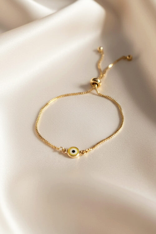 Delicate Gold Adjustable Slider Bracelet with Chic Yellow Evil Eye