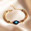 Minimalist Gold Adjustable Slider Bracelet with Classic Evil Eye Bead