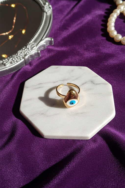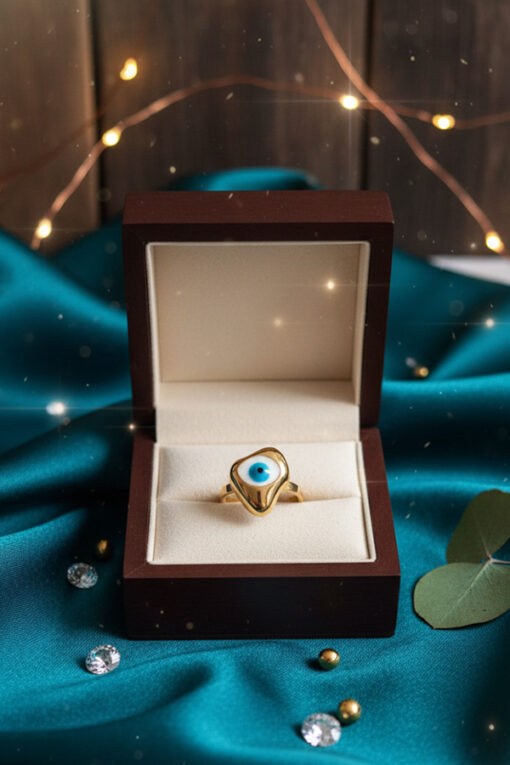 Bold Golden Evil Eye Protection Ring – Statement Piece for Strength & Style