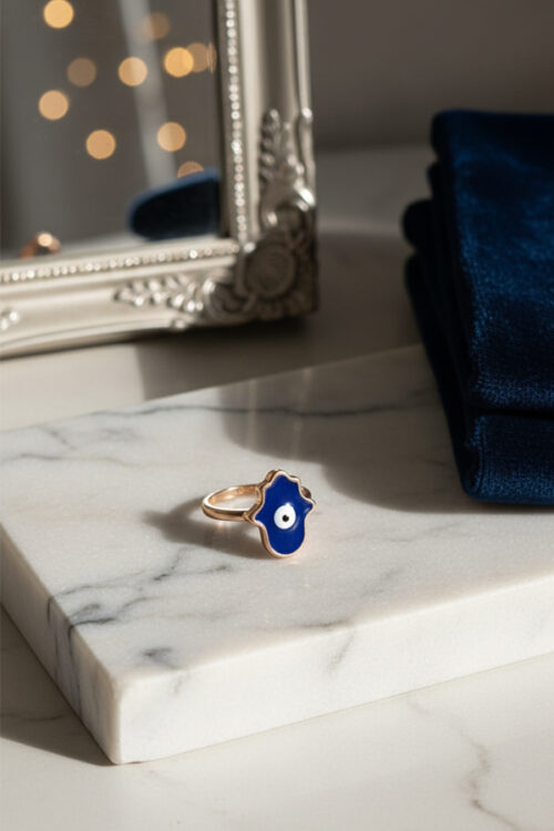 Make a bold statement with this Golden Evil Eye Protection Ring, a perfect fusion of modern elegance and ancient symbolism. Crafted with a radiant gold finish, the ring features a striking blue evil eye at its center — a timeless emblem believed to ward off negativity and attract positive energy. Its smooth, polished surface and sculpted design ensure comfort and sophistication for daily wear or special occasions. A powerful and stylish accessory symbolizing protection, luck, and inner strength.